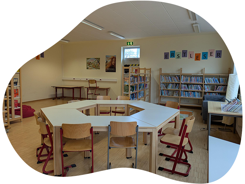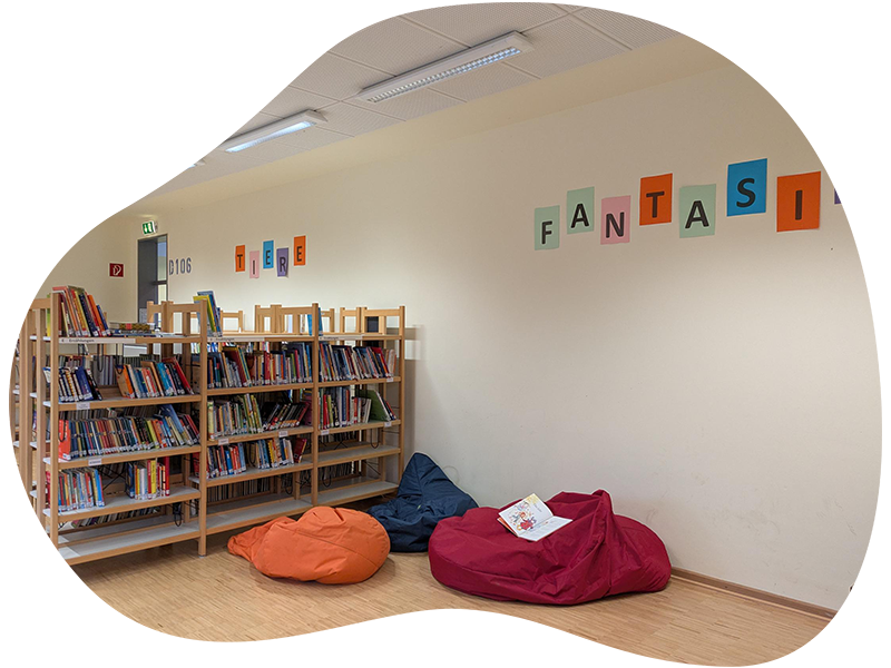 Unsere liebevoll eingerichtete Schulbücherei lädt die Kinder zum gemütlichen Schmökern und Entdecken ein. In hellen Räumen mit kuscheligen Leseecken finden sie eine bunte Vielfalt an Büchern – für jedes Alter und jeden Geschmack.